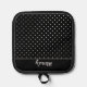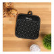 This pot holder features white polka dots on black with a solid black section at the top for your personalised name.