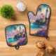 Cute beach lighthouse lovers kitchen Oven Mitt & Pot Holder Set