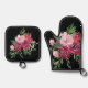 Black, Pink and Red Floral Design Potholder Oven Mitt Set