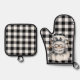 Black And White Buffalo Plaid Gnome Chief Oven Mitt And Pot Holder Set For Cooking