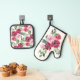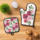 Pretty Pink and Red Floral Potholder Oven Mitt Set