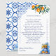Over or Under game Talavera blue chinoiserie caramic vase with oranges citrus bridal shower games card, Spanish Mediterranean talavera tiles summer citrus bridal shower games