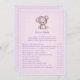 Adorable brown and purple baby bear for a girl's baby shower. Over or Under baby shower game. Pink and purple blanket with purple stitched edge border for background. Templates provided on back.