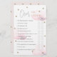 This cute "over or under?" bridal shower game card features a white background with faux gold stars and fluffy pink clouds. The reverse side features a baby pink background with faux gold star patterns. You can find matching products at my store.