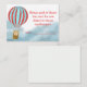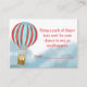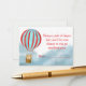 Baby shower enclosure card features a cute cub in a hot air balloon flying over the clouds.