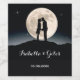 Set your soul alight with this gorgeous starry night celestial wedding design selection. Part of the "Over the Moon" collection. The silhouette of a romantic couple is set against the glow of a full moon on top of a mountain with the night sky dazzling with twinkling stars. Perfect for any star-crossed couple.