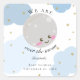"We are over the moon" baby shower custom stickers with cute blue clouds and gold/glitter moon and stars.