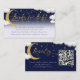 This is an adorable baby shower books for baby and gift registry enclosure card based on the phrase “We are over the moon”. The design features a cute handwritten script calligraphy font, a bright golden moon accompanied with gold stars and cute fluffy clouds in a twinkling starry night sky.