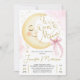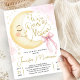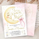 Over the Moon Baby Shower Girl Pink Bow Cute Moon Invitation