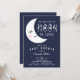 Adorable baby boy over the moon in love baby shower invitation. Flip our baby shower invite over to view a coordinating back with blue stars.
