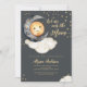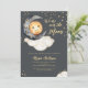 We are over the moon Baby Shower Invitation with sweet smile face moon and stars on dark background
