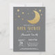 Over the Moon Baby Shower Invitation. Gold Glitter and Grey. For further customisation, please click the "Customise it" button and use our design tool to modify this template.
