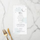 A menu card perfect for a baby shower. Featuring blue clouds and silver stars. Customise with your menu text for a brunch, luncheon or dinner.