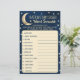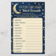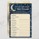 This "over the moon" game is perfect for anyone having a baby shower this year. The design features a golden moon with stars on a navy blue watercolor background and easy to personalise template wording. Simply give these game sheets out to your guests to play at the shower, whoever unscrambles the words first, wins a prize of your choice! Answers: 1) Diapers 2) Baby Shower 3) Wipes 4) Nursery 5) Blanket 6) Pacifier 7) One-sie 8) Swaddle 9) Activity Mat 10) Teether 11) Bassinet 12) Bottle 13) Rattle