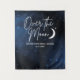 Over the moon backdrop banner for a bridal shower with a name and date. Vertical wall tapestry for a themed party, to celebrate the future Mr. and Mrs. couple.