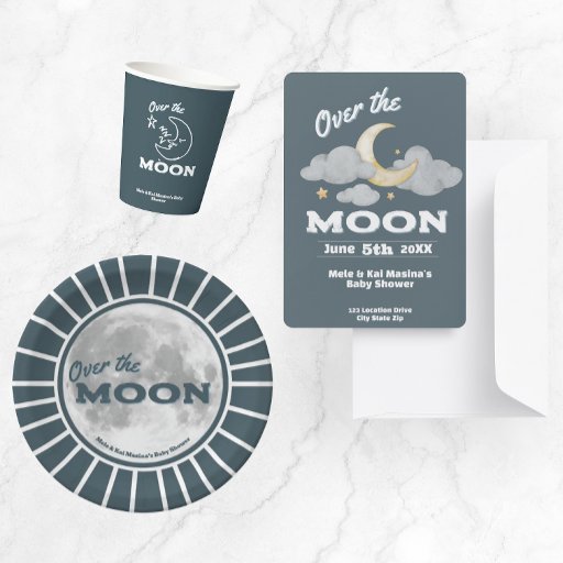 Over. the Moon Blue Baby Shower Custom Photo Wall Banner