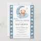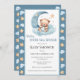 Over the Moon Blue Bear Watercolor Baby Shower Invitation