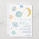Over the Moon Blue Boy Space Baby Shower Invitation