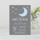 Over the Moon Boy Baby Shower Invitation. Blue and Grey. For further customisation, please click the "Customise it" button and use our design tool to modify this template.