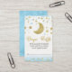 Sweet star and moon themed baby shower diaper raffle ticket or insert for a little boy. This design features a faux gold heading, a gold glitter moon and gold and blue stars.