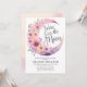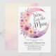 Customisable floral moon baby shower invitations featuring a watercolor pastel crescent moon and floral decoration on a white background.