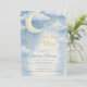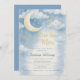 Featuring a soft hand-painted night sky, glowing crescent moon, and hanging gold stars surrounded by fluffy watercolor clouds, this celestial design feels both magical and elegant. The cozy blue-and-gold color palette makes it perfect for a baby boy shower or a gender-neutral starry-night theme. Also available as digital download.