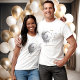 We are over the moon elegant celestial baby shower t-shirt in champagne and silver grey with a lovely moon and the baby face, diamonds and stardust. Gender neutral baby shower shirt, easily personalise the text. - Kate Eden Art