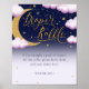 This is an adorable girl baby shower diaper raffle table top sign based on the phrase “We are over the moon”. The design features a cute handwritten script calligraphy font, a bright golden moon accompanied with gold stars and cute pink fluffy clouds in a twinkling starry night sky. This is a downloadable poster which you can print out yourself.
