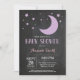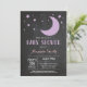 Over the Moon Girl Baby Shower Invitation. Purple and chalkboard background. For further customisation, please click the "Customise it" button and use our design tool to modify this template.