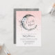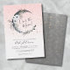 Over the Moon Baby Shower Invitation. Celebrate a magical moment with this whimsical boho celestial baby shower theme. "Over the Moon!" is prominently displayed within a crescent moon on a baby pink to white gradient background, which can be customised to any colours. An elegant yet playful look with a watercolor crescent moon, gold stars, and white anemone flowers, feathers, and other accents that give a bit of a bohemian vibe. The back features a grey starry night watercolor. The design showcases a pink, black, white, gold (no shimmer or foil), and grey colouring overall. The text is presented in an elegant mix of script typography and a serif font in black. This invitation is perfect for celebrating the mother-to-be and adds a mystical touch to your special day. Simple Stylish Elegant Watercolor Over the Moon Baby Shower Invitation. Available as a printed invitation, or as a downloadable digital invite that you can send in e-mail or have printed locally!
