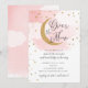 Over the Moon Gold Stars Pink Baby Shower Invitation