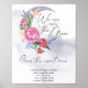We are over the moon. Watercolor moon with flowers.