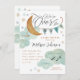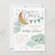 A whimsical moon and banner adorn a star-filled sky in this original baby shower invitation. Only from Little Scribbles.