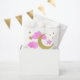 Send your guests home with something sweet in these dreamy “Over the Moon” baby shower favour bags. Adorned with a glittery gold moon, pink watercolor clouds, and golden stars, these customisable treat bags add a magical touch to your party decor. Personalise them with your name and date for a keepsake-worthy finish. Ideal for girl baby showers, celestial themes, and moon-and-stars celebrations.