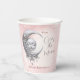 We are over the moon elegant celestial baby shower paper cups in pink and silver grey with a decorated moon and the baby face, diamonds and stardust. Girl baby shower tableware, easily personalise the text. - Kate Eden Art