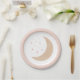Add a finishing touch to your baby shower with plates, featuring pink and gold watercolor moon and stars.
