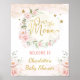 Over the Moon Pink Gold Floral Baby Shower Welcome Poster