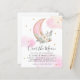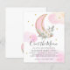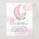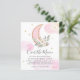 Over the Moon Pink Gold Glitter Floral Greenery Watercolor Girl Baby Shower Invitation