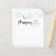 Baby shower activity card features watercolor blue clouds and gold stars. Prayers card prompts guests to share prayers for the parents to be as they prepare for baby.