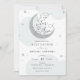 Baby Shower invitation featuring silver faux glittery moon and fun script "We are over the moon!" Personalise with your information or click "click to customise further" to adjust font type, size, colour.