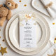 Let your guests know what’s on the table with this beautifully themed Over the Moon baby shower menu card. Featuring a soft-toned teddy bear floating on a crescent moon with scattered stars, it pairs perfectly with your celestial-themed party decor while adding elegance to your table setup.