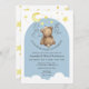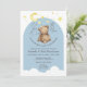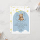 Over The Moon Teddy Bear Dusty Blue Baby Shower Invitation