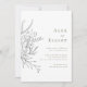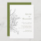 Modern, playful, and yet sophisticated, this wedding invitation features a hand drawn overflowing floral bouquet paired with chic typography in a dark green, coordinating with the lighter green on the backside. The contrast of black floral and green type adds an extra edge of glamour.