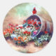 An original sold oil painting of a cardinal sitting on a bucket of flowers.