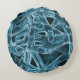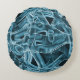 Overlapping curves in tape shape, blue neon relief round cushion