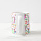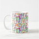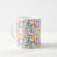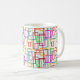 This mug has a Bauhaus design of overlapping rectangles in various colors.