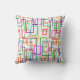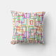 This throw pillow has a Bauhaus design of overlapping rectangles in various colors.