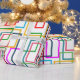 This wrapping paper has a Bauhaus design of overlapping rectangles in various colors.