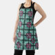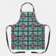 This apron has an art deco design of overlapping concentric squares in teal and pink.