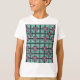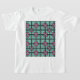 This kid's t-shirt has an art deco design of overlapping concentric squares in teal and pink.